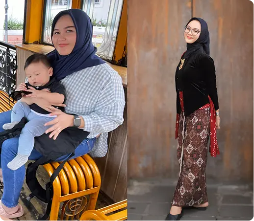Long story short, dulu berat badanku sempat naik sampai 98kg setelah melahirkan — Jerawatan parah, gampang sakit pinggang, dan badan tuh rasanya capek. Awalnya aku denial, sampai akhirnya aku sadar, kalau menjadi ibu yang sehat itu penting banget! Dari situ, pelan-pelan aku mulai ubah gaya hidup. Tapi aku juga ngerasa bingung awalnya, harus mulai dari mana. Aku coba belajar tentang health and nutrition. Sampai akhirnya, aku berhasil nemuin cara yang ramah buat aku ibu anak satu dan seorang pegawai.